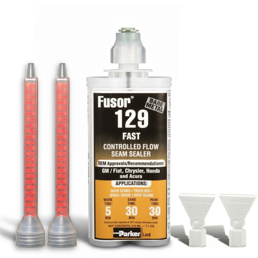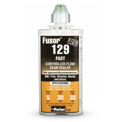 Fusor 129 seam sealer is fast curing and bonds extremely well to painted and two-component primed surfaces. Sealer can be applied directly to bare metal on rigid joints, however flexible joints, such as roof seams and drip rails, should always be primed.