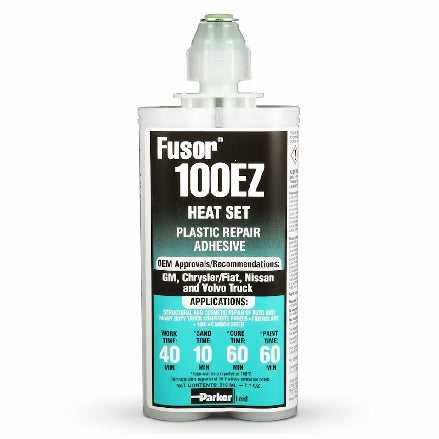 Fusor® 100EZ Plastic Repair Adhesive, Heat Set, 7.1oz/210ml (3029818) is a two-component, epoxy-based adhesive used for structural and cosmetic repair of auto and heavy-duty truck body panels and all types of rigid body plastics.